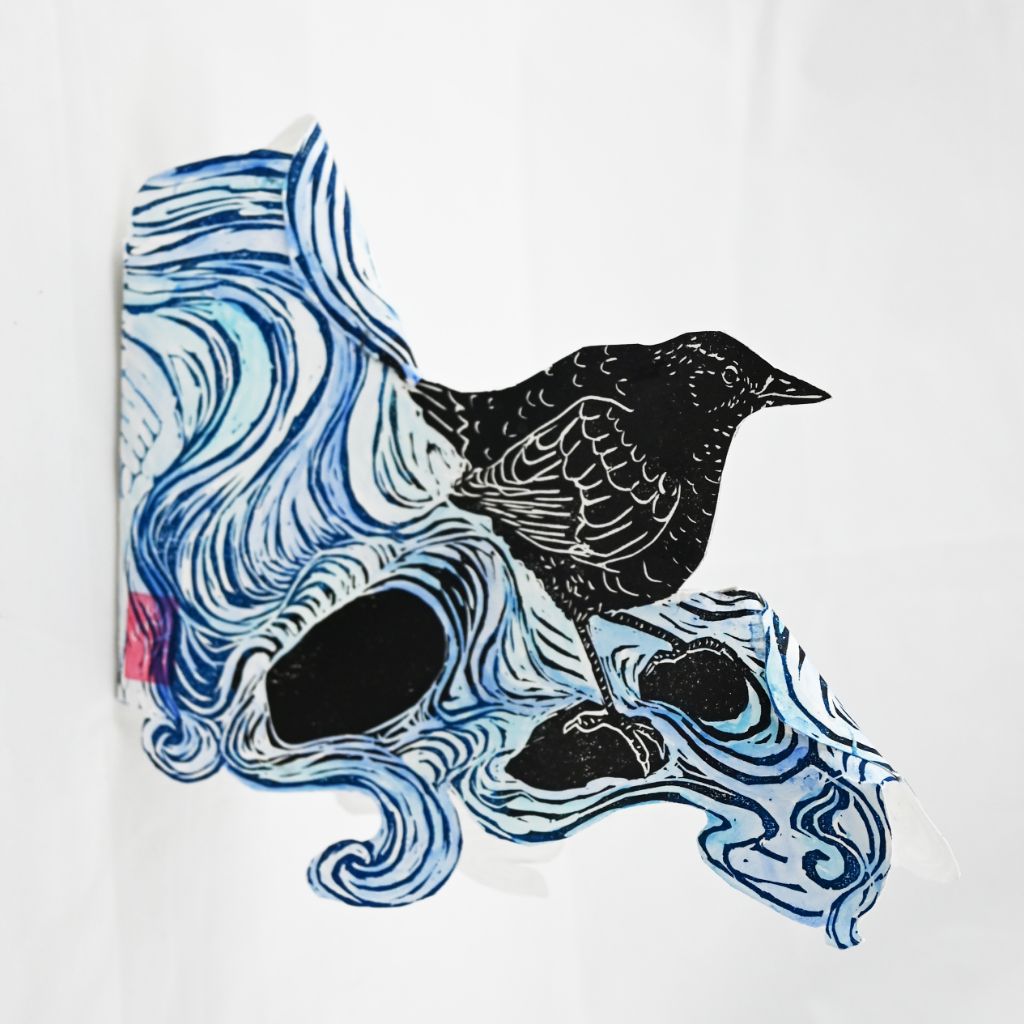 Linocut and watercolour on rag paper
